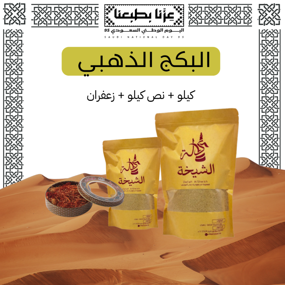 عرض اليوم الوطني 1 كيلو من قهوة الشيخه+نص كيلو من قهوة الشيخه+1 جرام زعفران فاخر من أجود أنواع الزعفران